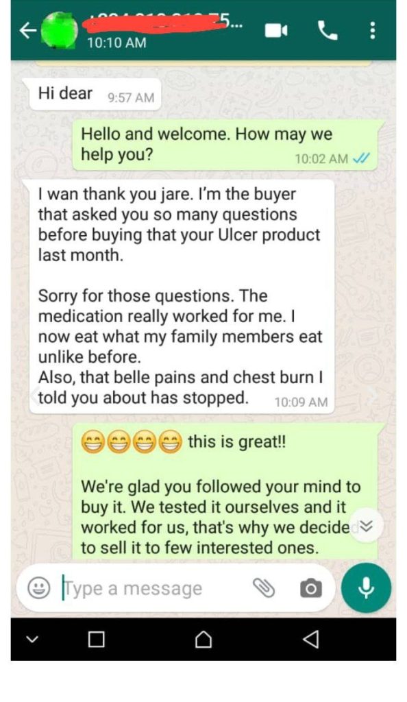 Use Olsa Powder for 20 days. If your ulcer pain doesn’t go away, call us, and we will refund your money fully. No stress, no questions.We’re confident because thousands of Nigerians trust Olsa Powder.